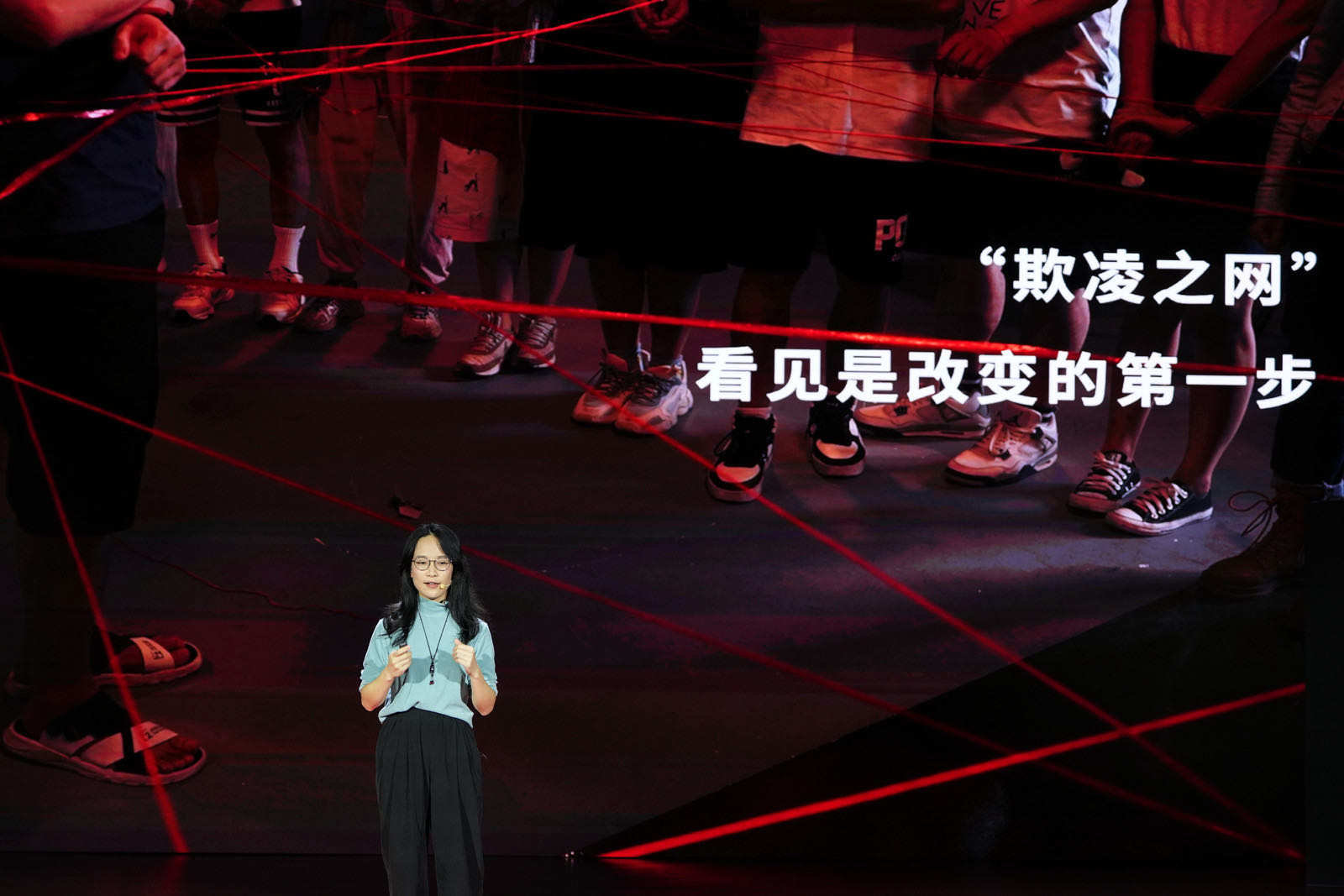 我记得有一次,有一位年轻的男老师自告奋勇扮演受欺凌者,刚开始他还能面带微笑地直视每一位说话的人,但是随着这张网一点一点地拉起来,现场的氛围也越来越压抑沉重。肉眼可见,这位老师的姿态变得越来越僵硬、紧绷,到最后,他忍不住哭了。